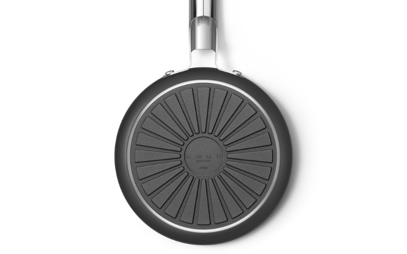 Thiết kế đáy đặc biệt giúp nhiệt lan tỏa đồng đều trên toàn bộ bề mặt. Phương pháp cố định đáy thép vào thân nhôm được cấp bằng sáng chế giúp hạn chế biến dạng, giữ đáy luôn phẳng và ổn định trong suốt quá trình sử dụng.