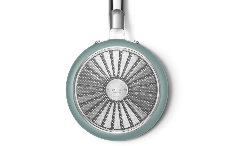 Thiết kế đáy đặc biệt giúp nhiệt lan tỏa đồng đều trên toàn bộ bề mặt. Phương pháp cố định đáy thép vào thân nhôm được cấp bằng sáng chế giúp hạn chế biến dạng, giữ đáy luôn phẳng và ổn định trong suốt quá trình sử dụng.