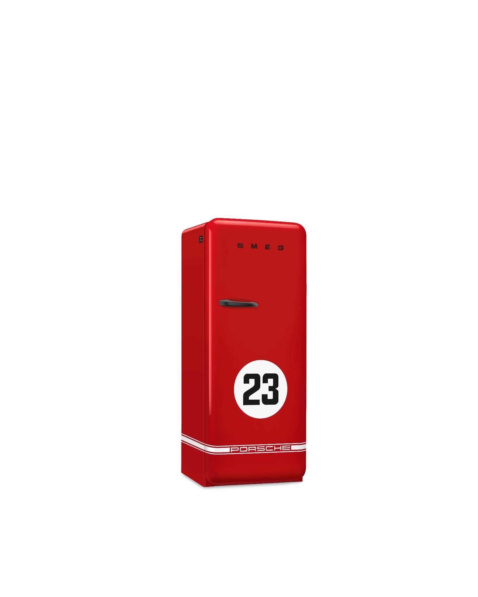 Hoàn thiện trong sắc đỏ 917 Salzburg Red, chiếc tủ lạnh nổi bật với số 23 và dải sọc đặc trưng của Porsche chạy dọc cửa và hai bên hông, những chi tiết gợi nhắc huyền thoại Porsche 917 KH Salzburg. Một tuyên ngôn thị giác mạnh mẽ, biến không gian đam mê của bạn thành phòng trưng bày di sản của một huyền thoại xe đua.